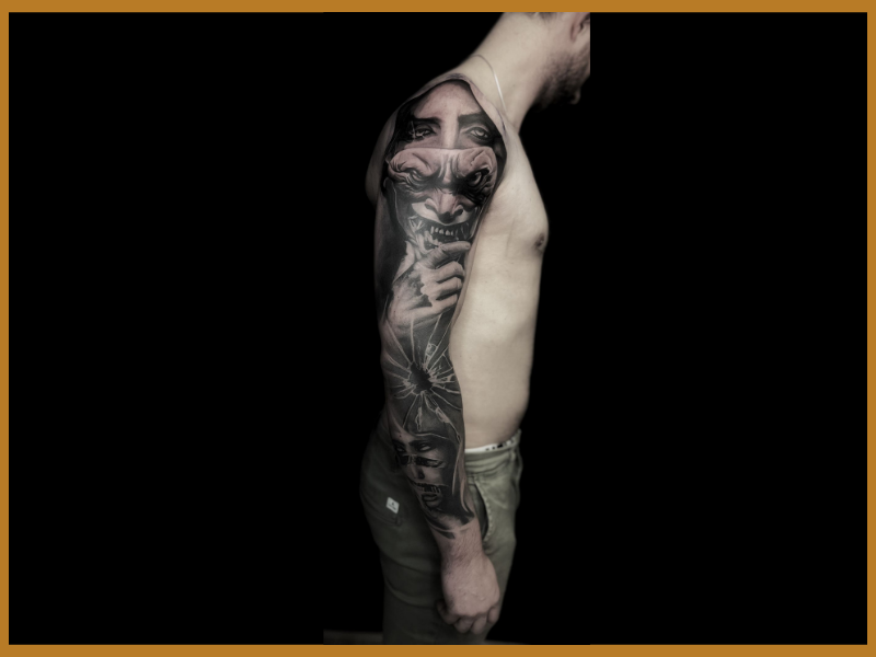 Dat hangt af van de grootte. Een klein realistisch portret kan 2–3 uur duren, terwijl een grotere tattoo over meerdere sessies verspreid wordt.